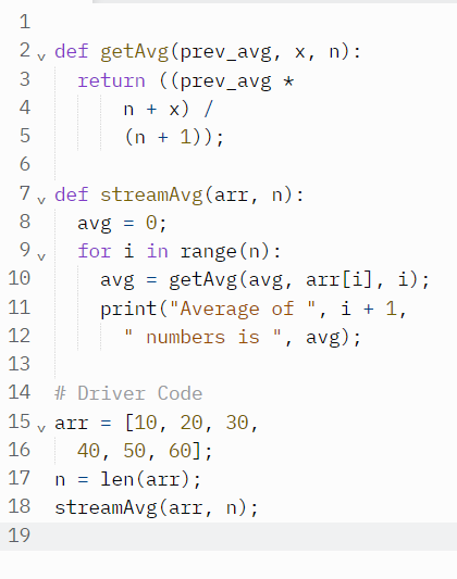 Given a stream of incoming numbers, find average or mean of the stream at every point.
